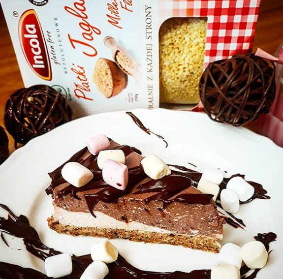 ✔500g twarogu ✔200g jogurtu naturalnego ✔25g żelatyny ✔50ml wrzątku ✔5 łyżek erytrolu ✔25g odżywki białkowej ✔2 łyżki kakao ✔2 banany ✔2 łyżki masła orzechowego ✔100g płatków jaglanych @incola_glutenfree ➡️Płatki jaglana zblendować z masłem i bananami. Wyłożyć na spód formy z papierem do pieczenia. Żelatynę rozpuścić, twaróg wymieszać z jogurtem, erytrolem i odżywką. Dodać żelatynę i podzielić masę na 2 części,do jednej dodać kakao i wymieszać. Przelac do formy warstwowo i włożyć do lodówki na 2h. Smacznego!