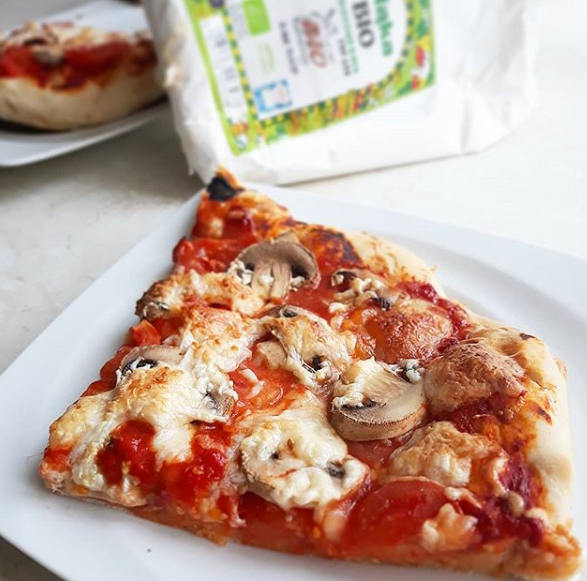 Mam tutaj przepis na domową pizzę na orkiszowym cieście, z szynką, pieczarkami, pomidorami i mozzarellą😍. W smaku jest boska! Najlepsze ciasto na pizzę, jakie robiłam… puszyste, chrupiące na zewnątrz… IDEALNE!