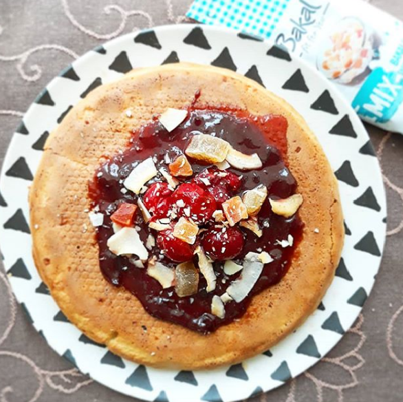 A na wierzchu dżem wiśniowy, orzeszki i bakalie @bakal_pl 😍 Idealne śniadanie w mniej niż 10 minut.