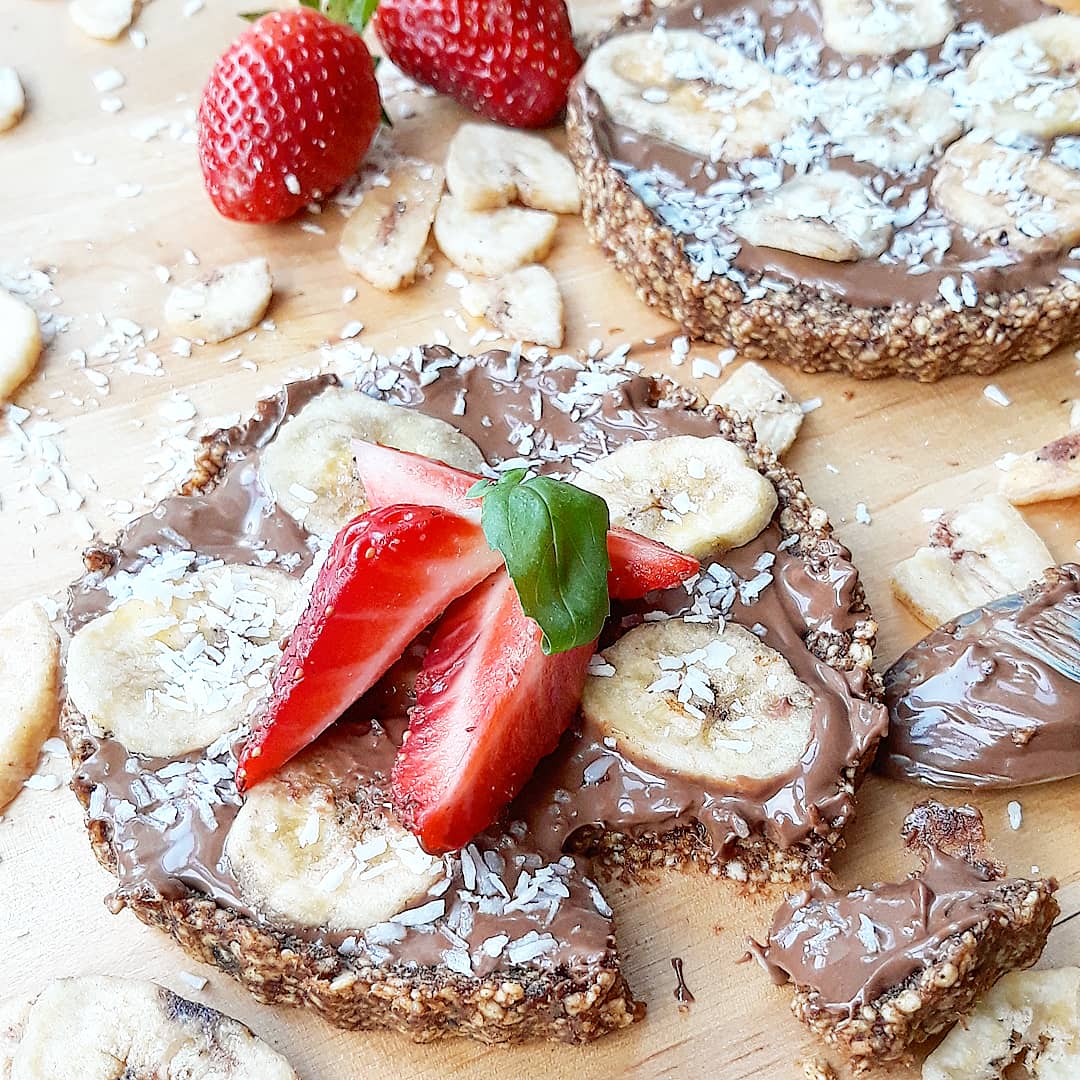 ✔100g płatków jaglanych ✔80g daktyli suszonych ✔50ml mleczka kokosowego ✔60g gorzkiej czekolady ✔banan ➡️Daktyle zalać wrzątkiem i odstawić na 10 minut. Następnie zblendować z płatkami jaglanymi. Przełożyć masę do foremek silikonowych (lub z papierem do pieczenia). Czekoladę rozpuścić i wymieszać z mleczkiem kokosowym. Polać tartaletki i ozdobić owocami.