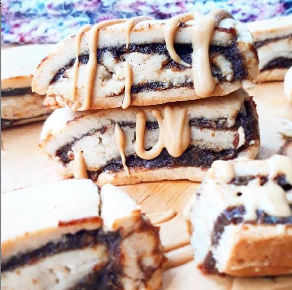 Nadzienie: ✔200g daktyli suszonych ✔2 łyżki masła orzechowego ➡️Daktyle zalewamy wrzątkiem i odstawiamy na 15 minut. Odlewamy wodę i blendujemy z maslem orzechowym. Ciasto wyjmujemy z lodówki i cienko rozwałkowujemy. Wykładamy karmel na środek i rozprowadzamy po cieście. Zwijamy w rulon i kroimy. Przekładamy na papier do pieczenia i pieczemy ok. 25 minut w 190 stopniach.