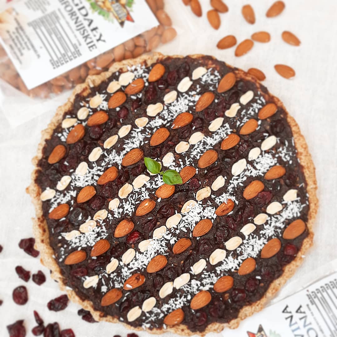 Krem: ✔150g daktyli suszonych ✔50g gorzkiej czekolady ✔bakalie ➡️Daktyle zalewamy wrzątkiem i odstawiamy na 15 minut. Następnie dolewamy wodę i blendujemy. Dodajemy rozpuszczoną czekoladę i mieszamy. Smarujemy kremem ostygniętą tartę i układamy bakalie.