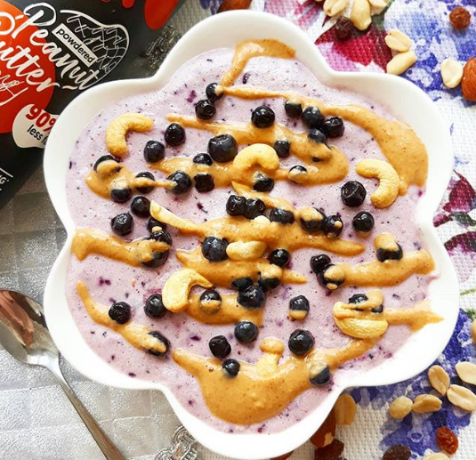 ✔200g serka wiejskiego ✔dojrzały banan ✔3 łyżki jogurtu naturalnego ✔garść jagód ✔2 białka jaj ✔masło orzechowe (ja użyłam tego w proszku od @nustino_com)