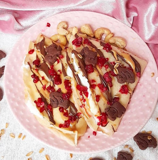 Mam tutaj przepis na moje ulubione naleśniki z mąki ryżowej! Próbowałam już z różnymi mąkami i to właśnie z ryżowej smakują mi najlepiej (i zawsze wychodzą!😏). W środku oczywiście standardowo twaróg z jogurtem, odżywką białkową solony karmel i cynamonem. Do tego maliny, czekolada gorzka, masło orzechowe i ciasteczka!🤩
