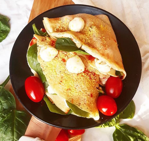 Pyszne, delikatne naleśniki z łososiem wędzonym, mozzarellą, świeżym szpinakiem i suszonym pomidorami🤤. Lubicie takie nietypowe połączenia czy wolicie tradycyjne – z dżemem lub serem?🙈 .
