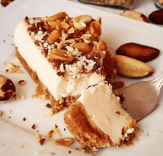 spód: ✔45g masła orzechowego ✔50g kruchych herbatników ➡️Herbatniki pokruszyć i wymieszać z masłem orzechowym. Przełożyć na spód formy na ciasto.