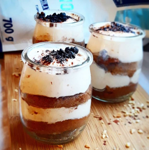 ✔6 biszkoptów ✔150g ricotty ✔50ml espresso ✔3 łyżki ksylitolu ✔łyżka sosu karmelowego 0 kcal (opcjonalnie) ✔20g odżywki białkowej @allnutrition ✔łyżeczka kakao gorzkiego ✔10ml amaretto ✔aromat waniliowy (wg uznania) ➡️Do espresso dolać odrobinę amaretto (można oczywiście pominąć) i aromat waniliowy. W oddzielnej misce ricottę zmiksować z odżywką, ksylitolem i sosem karmelowym. Biszkopty namoczyć w kawie i układać na przemian z kremem w szklance. Wierzch deseru posypać kakao i włożyć do lodówki na ok. 20 minut.