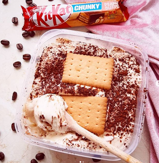 Ostatnio tata kupił mi tego kitkata o smaku masła orzechowego i od razu wpadłam na genialny pomysł… deser że zdjęcia to połączenie czekolady, masła orzechowego i… tiramisu🤤.