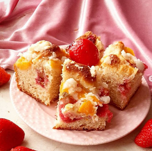 ✔2 łyżki erytrytolu ✔70g mąki (ja użyłam ryżowej @krukam dlatego taka biała kruszonka) ➡️Drożdże rozkruszyć i wymieszać z ciepłym mlekiem, łyżeczką cukru i łyżką mąki. Odstawić na 15 minut w ciepłe miejsce. Do miski wsypać mąkę, dodać jajka, rozpuszczony olej, erytrytol i zaczyn. Zagnieść ciasto (ok. 10 minut), jeśli będzie klejące dosypać mąkę. Odstawić ciasto w ciepłe miejsce na ok. 50 minut. Następnie przełożyć ciasto do blachy (25cm na 20cm) posmarowanej tłuszczem. Pokroić truskawki/brzoskwinie w kostkę i powciskać w ciasto. Zagnieść kruszonkę i posypać wierzch ciasta. Piec w rozgrzanym do 180 stopni piekarniku 35 minut.