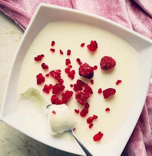 ✔15g żelatyny + 100ml wrzątku ✔2 łyżeczki erytrytolu ✔100ml kefiru naturalnego/jogurtu ➡️Żelatynę rozpuścić we wrzątku, dodać erytrytol i wymieszać. Gdy lekko ostygnie dolać kefir, energicznie wymieszać i przelać do miseczki. Włożyć do lodówki na 1h.