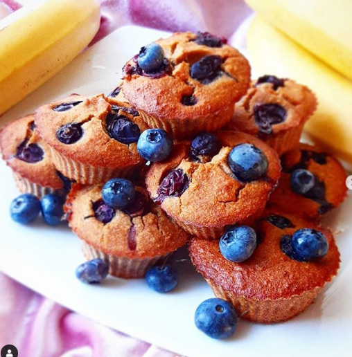 ➡️Białka oddzielić od żółtek i ubić na sztywno. Żółtka zblendować bananami i olejem. Dodać wszystkie suche składniki oraz mleko. Na koniec wymieszać delikatnie z białkami oraz dorzucić borówki. Wlać masę do silikonowych foremek. Piec w rozgrzanym do 175 stopni piekarniku ok. 25 minut.