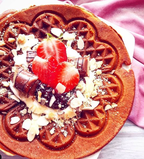 A te dodatki dają +10 do smaku i uroku gofrów – skyr waniliowy, truskawki, mus porzeczkowy, Kinder Bueno…