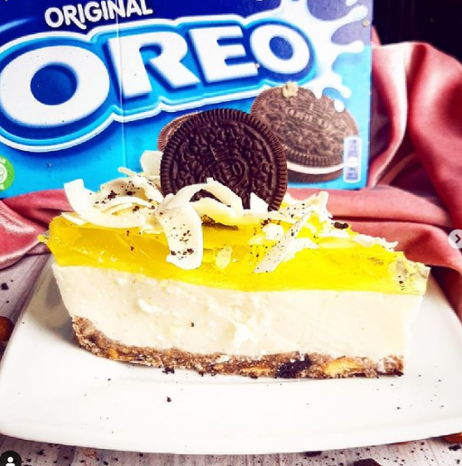 Kremowy, waniliowy sernik na zimno na spodzie z kruchych ciasteczek oraz OREO, a do tego cytrynową galaretka i kokos dla przełamania smaku!😍