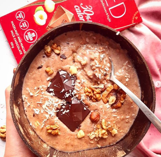 Owsianka FERRERO ROCHER – inna niż wszystkie, bo wyjątkowo czekoladowa o bardzo piankowej konsystencji🥰.