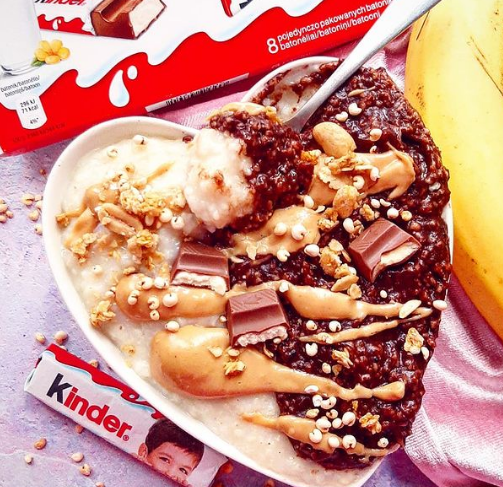 Siemanoo! Oto jeden z moim ostatnio najlepszych przepisów na śniadaniowy deser – jaglanka Kinder z wysoką zawartością białka!😻