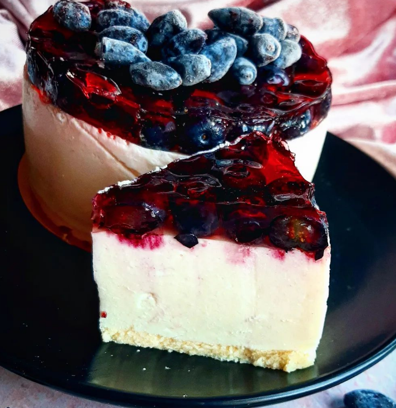 Waniliowy sernik na zimno z jagodami i galaretką 🌸