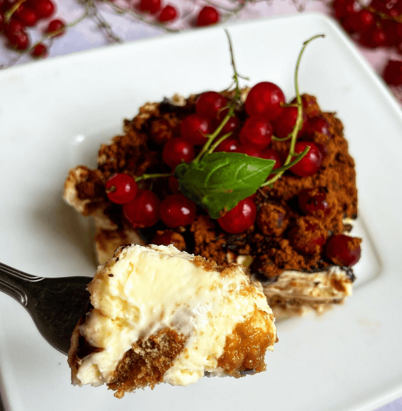 Obłędnie kremowe tiramisu z dodatkiem porzeczek dla przełamania tego delikatnego smaku mascarpone oraz biszkoptów mocno nasączonych kawą oraz karmelowym likierem 🤤🤤🤤