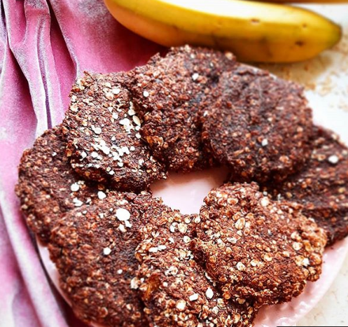 ➡️Banana rozgnieść widelcem. Dodać kakao, cynamon, erytrytol oraz masło orzechowe i wymieszać. Na koniec dodać płatki owsiane i zagnieść dokładnie. Uformować ciasteczka o grubości ok. 1cm i piec w rozgrzanym do 180 stopni piekarniku ok. 14 minut.