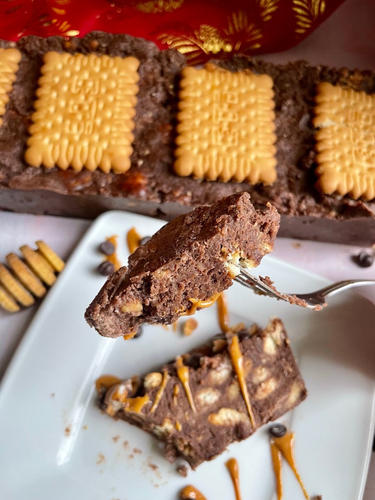 ➡️W rondelku rozpuścić masło, dodać czekoladę oraz odrobinę mleka/wody i gotować do rozpuszczenia. W misce pokruszyć herbatniki, dodać suche składniki, a na koniec wlać masę czekoladową. Całość wymieszać dokładnie i przelać do formy z papierem do pieczenia lub lekko natłuszczonej. Włożyć do lodówki na 1-2h. Smacznego!🔥