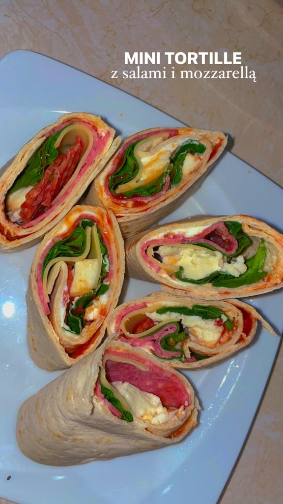 Mini tortille z salami, mozzarellą i porcją warzyw!😍