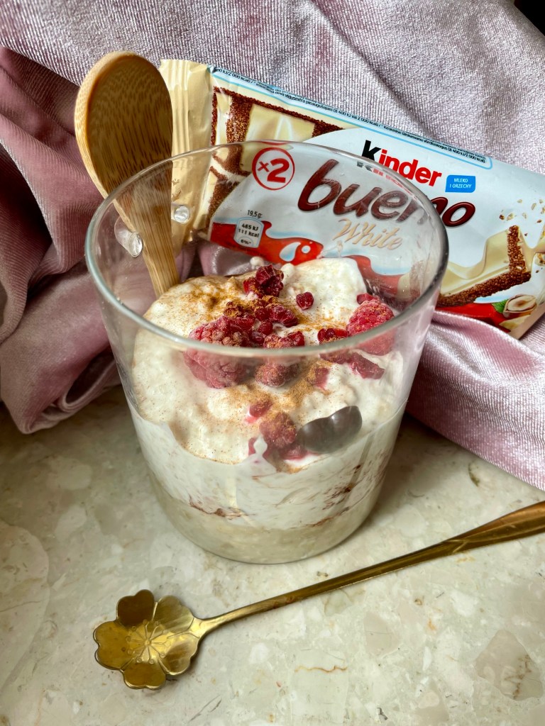 Pyszna kremowa owsianka Kinder Bueno White z malinami!😘