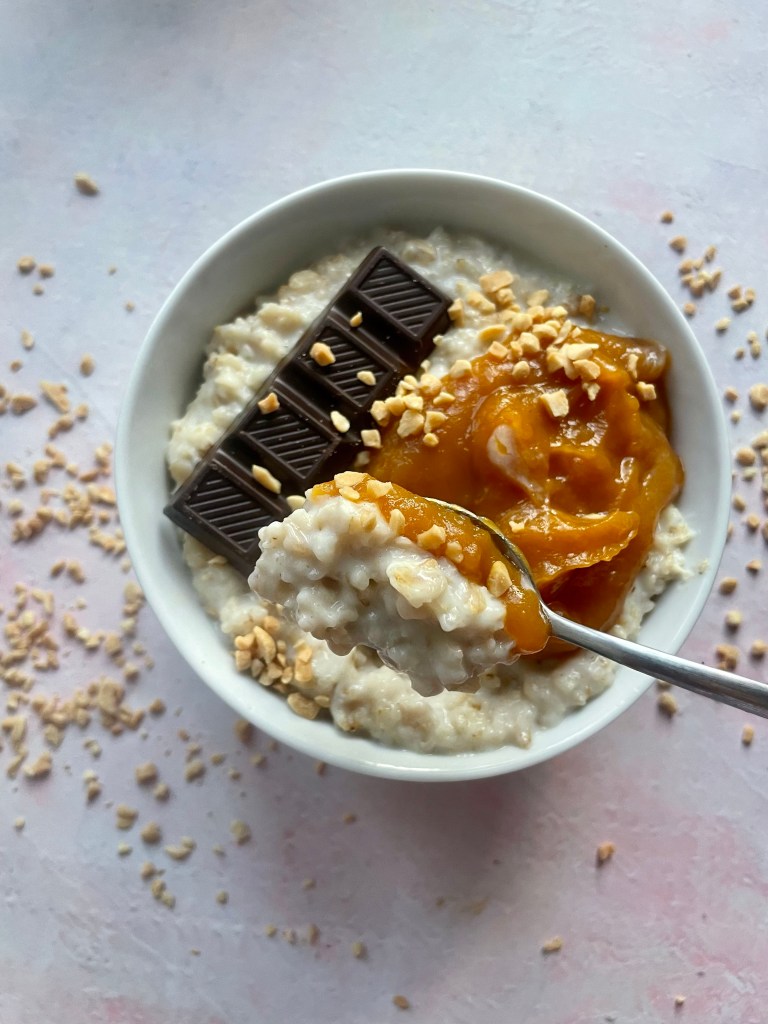 Mleczna, gęsta i bardzo kremowa! Z dodatkiem musu brzoskwiniowego oraz gorzkiej czekolady dla przełamania słodkiego smaku. Obłędne połączenie 🥰