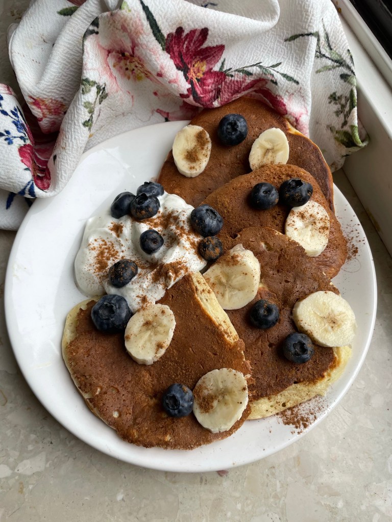 Bananowe placuszki z dodatkiem skyru i borówek!😁