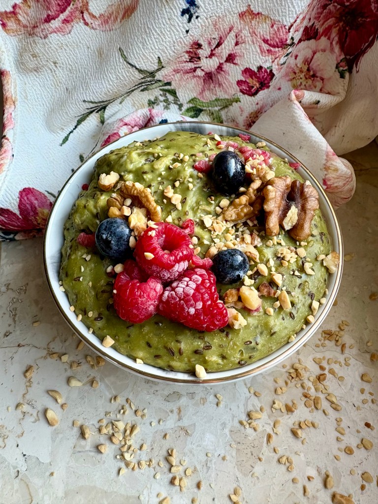 Genialna kremowa owsianka budyniowa Matcha!😍👌🏻 Z dużą ilością błonnika – świetna dla zdrowia jelit i lepszego trawieniam🥰