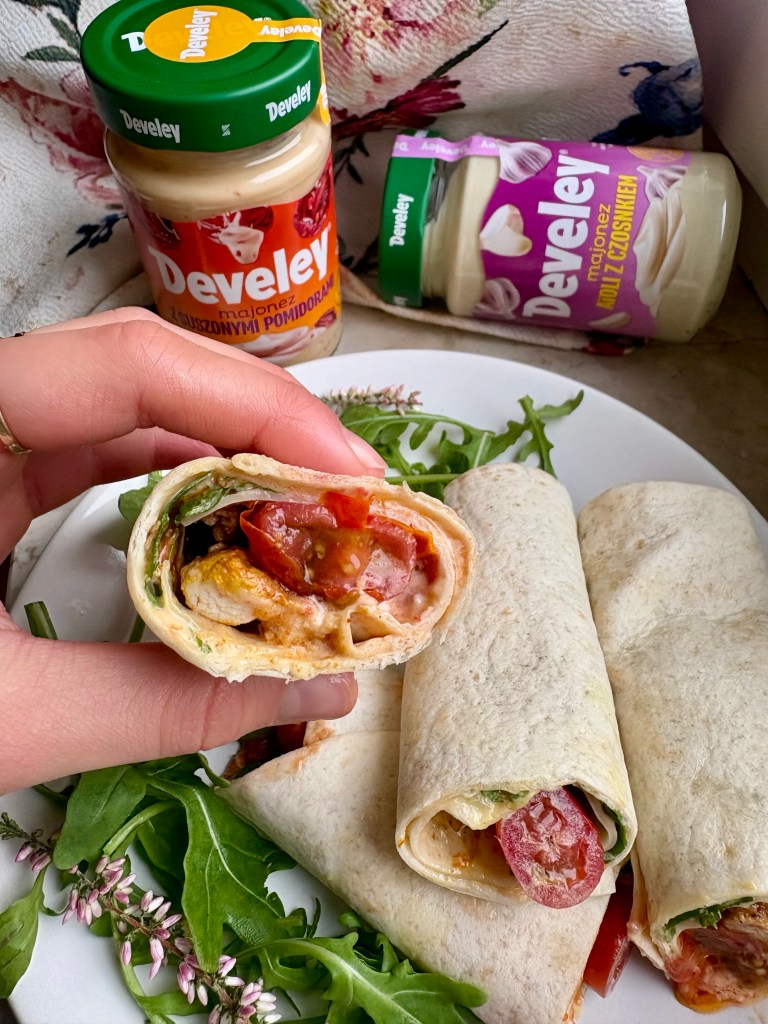 Szybki pomysł na zdrową kolację lub drugie śniadanie, czyli domowe tortille z kurczakiem, warzywami i dodatkiem majonezu z suszonymi pomidorami❤️ @develey_polska