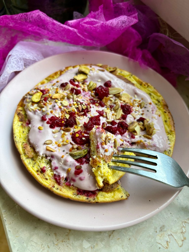 LOW FODMAP Omlet malinowy z jogurtem i mieszanka orzechów i ziaren😘!