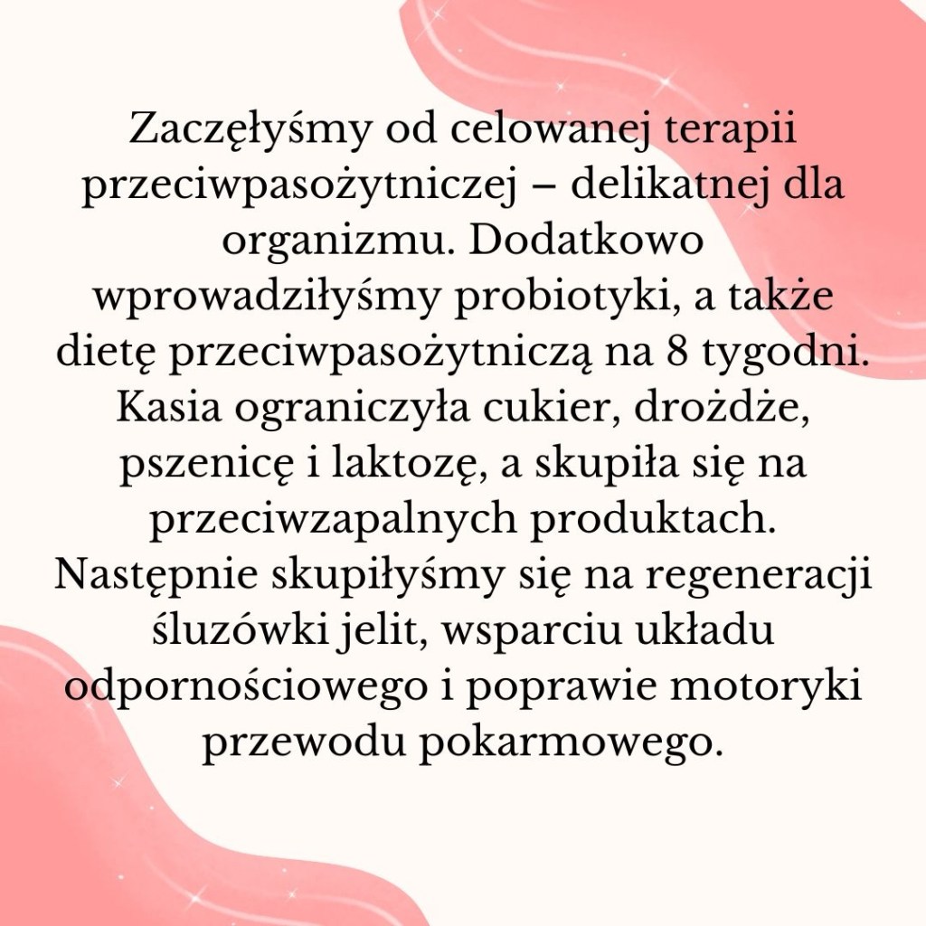 Wdrożyłyśmy odpowiedni plan działania, suplementację indywidualną, dietę oraz wsparcie organizmu i antybiotyki od lekarza.
