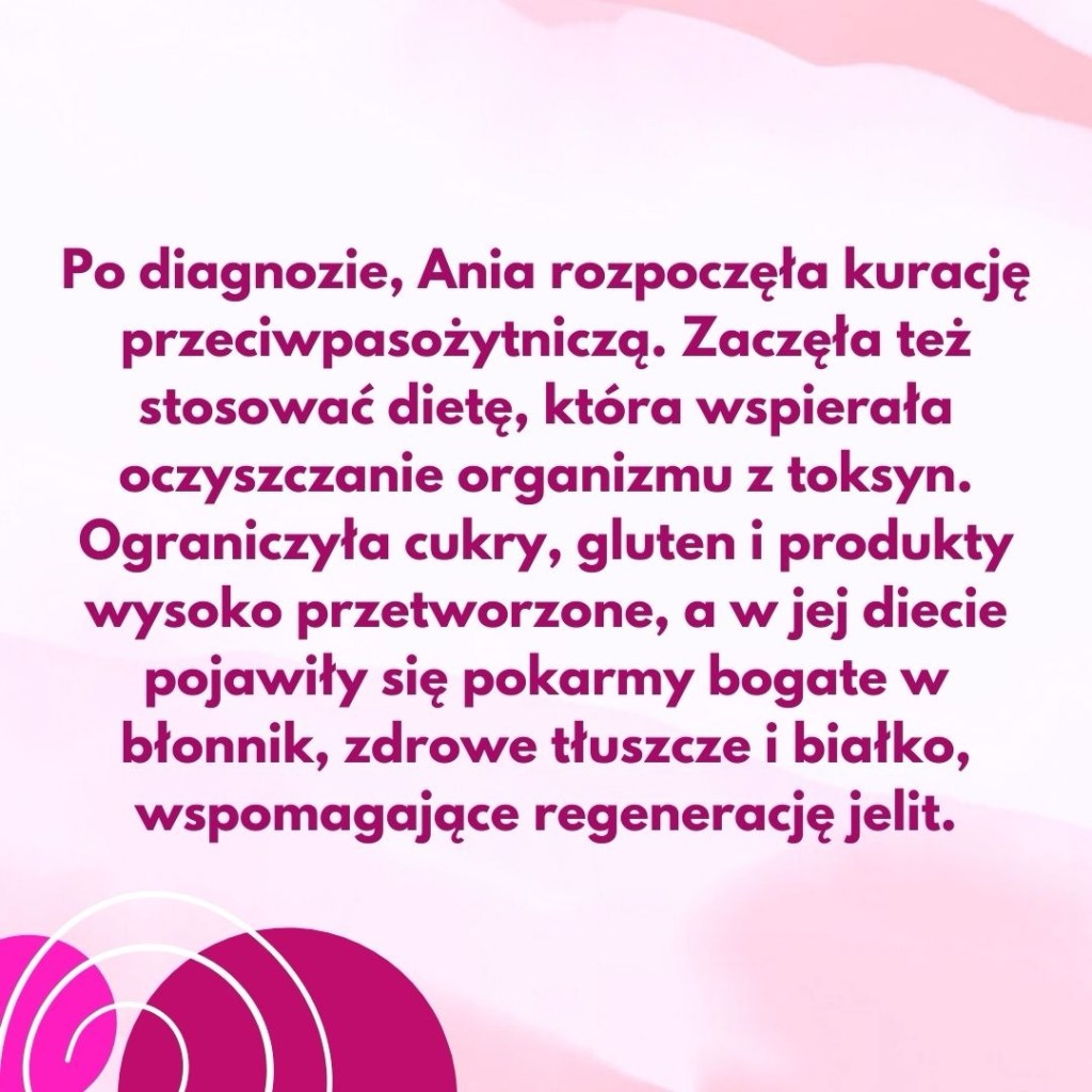 Zalecenia dla Ani obejmowały skuteczną terapię przeciwpasożytniczą, wsparcie diety eliminacyjnej oraz odbudowę flory jelitowej. Dopiero po usunięciu lambliozy leczenie SIBO było możliwe i przyniosło oczekiwane efekty.🔥