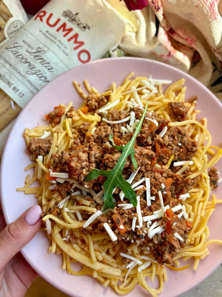 Dziś na obiad klasyka, ale w najlepszym możliwym wydaniu – spaghetti z sosem pomidorowym i pysznym makaronem!