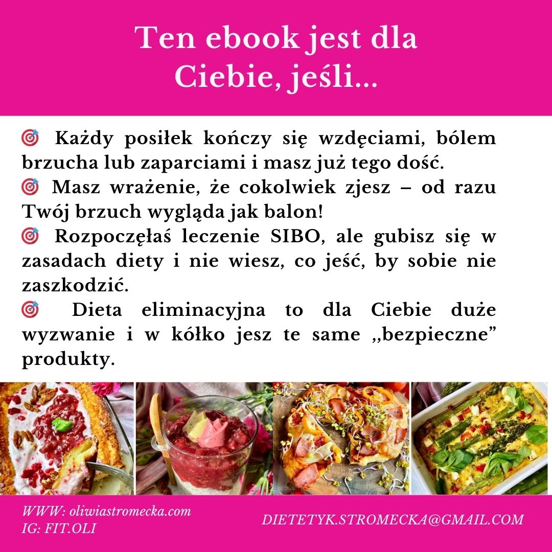 Stworzony z myślą o osobach zmagających się z problemami trawiennymi, wzdęciami, zespołem jelita drażliwego (IBS), przerostem bakteryjnym (SIBO/IMO) oraz wszystkimi, którzy chcą odzyskać komfort trawienny i poprawić jakość życia poprzez dietoterapię.