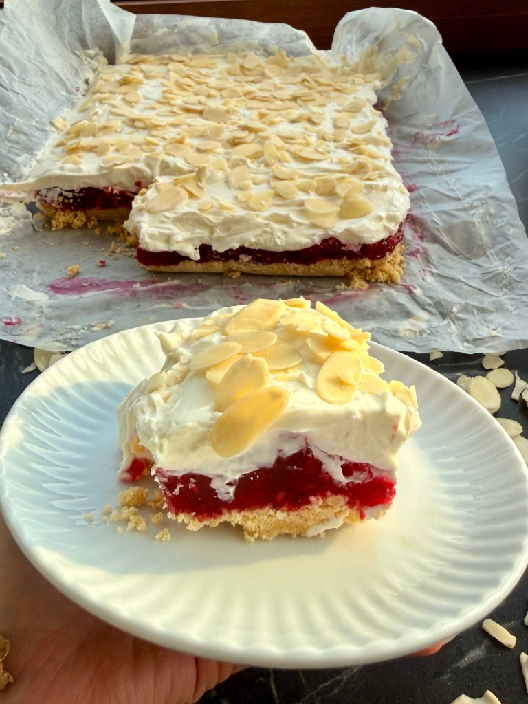 Jeśli masz ochotę na coś słodkiego, ale trochę bardziej „fit”, ten deser będzie strzałem w dziesiątkę. Lekki, owocowy i z chrupiącym spodem!🩷